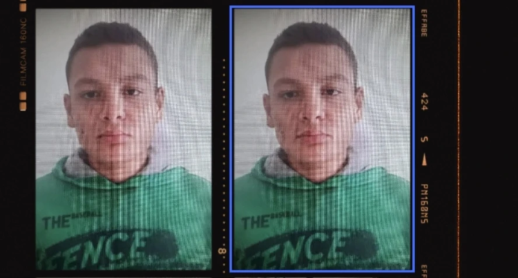 Приметы: высокий – рост 1800 см, плотный, темно-русые волнистые волосы, на правой щеке заметная родинка. Одежда: бело-голубая мастерка, синие джинсы, коричневые ботинки.