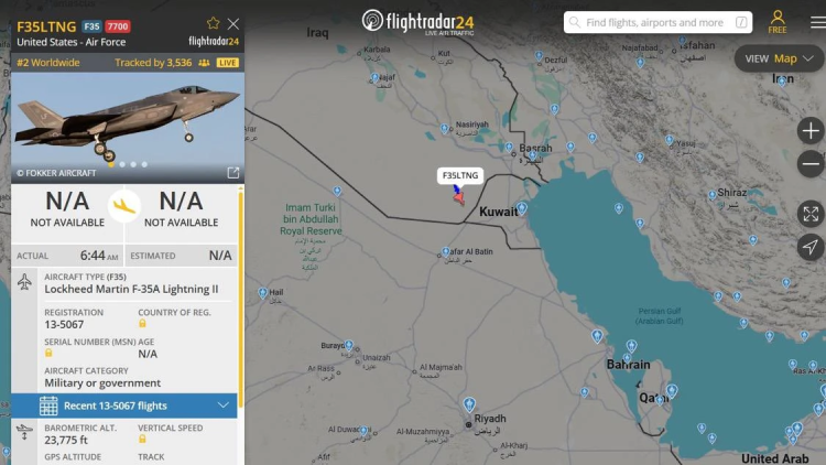 - Американский F-35 подает сигнал бедствия 7700 во время полета над Ираком, - говорится в сообщении.Как известно, сигнал бедствия 7700 сообщает о возникновении на борту аварийной или чрезвычайной ситуации (ЧС). такой борт нуждается в особом снимании наземных служб и приоритетной посадке, кроме того, не исключена необходимость помощи наземных экстренных служб.