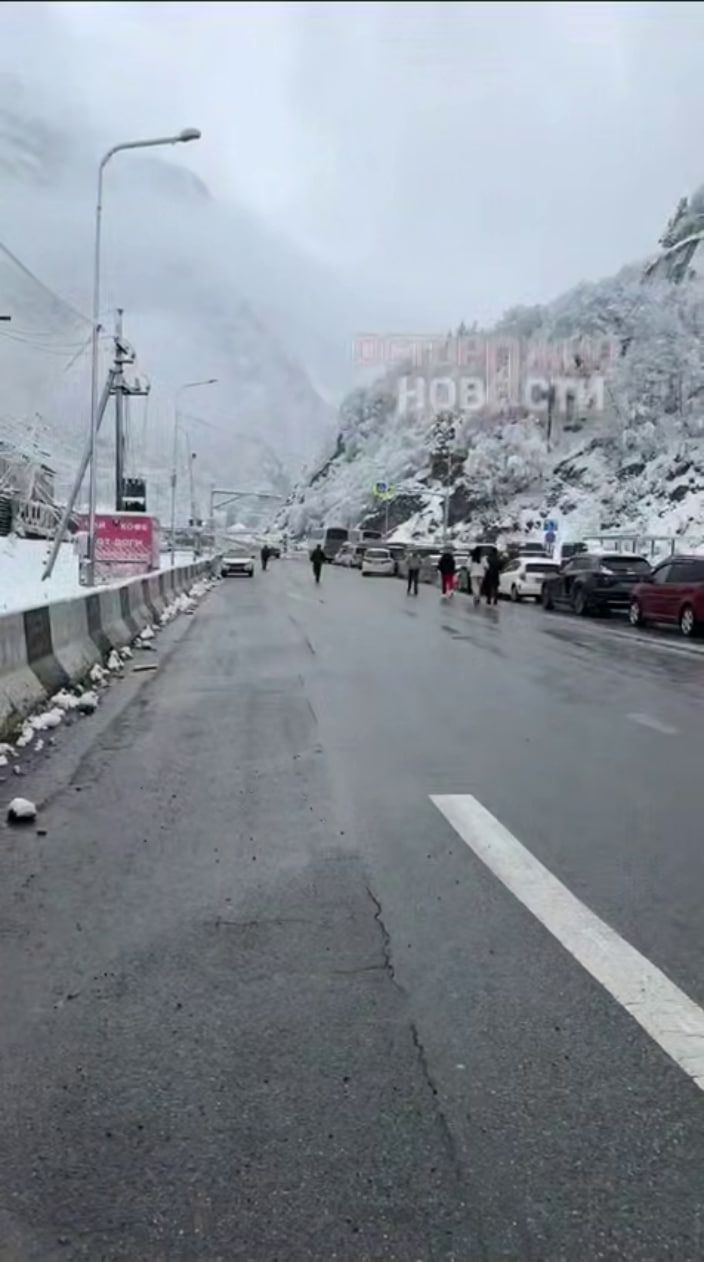 Сильный снегопад накрыл высокогорные районы Кавказа и резко ухудшил видимость. На дорогах образовались заторы, часть машин остановилась еще на подъездах к КПП. После нескольких часов ожидания водители и пассажиры начали самостоятельно уезжать в ближайшие населенные пункты и гостиницы, чтобы переждать непогоду.