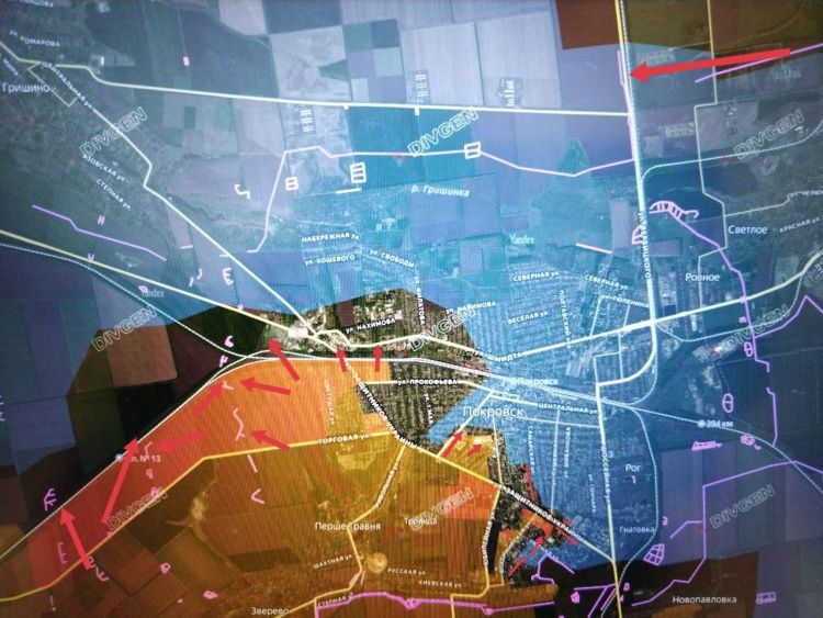 По данным военкора, в самом Покровске сражения идут за микрорайоны Южный, Шахтерский (уже зачистка) и Солнечный, аквапарк, водоканал на юго-востоке города.