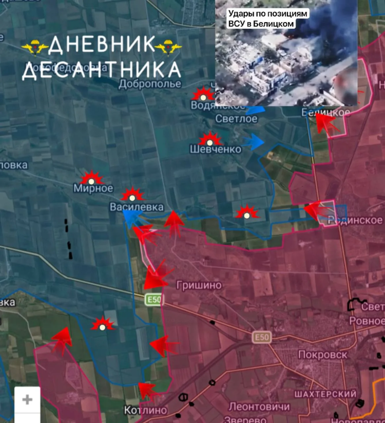 После того, как российская армия освободила Гришино, бойцы работают юго-западнее села и зачищают карман, который прилегает к трассе Е-50.