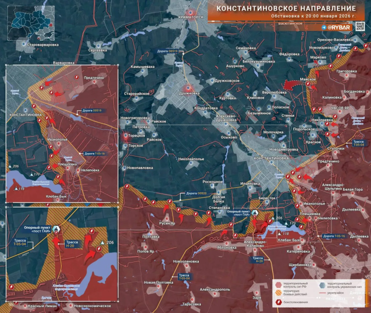 Константиновское направление: известно об успехах российской армии в районе Клебан-Быкского водохранилища. В Константиновке бойцы российской армии идут со стороны Предтечино. К западу от Часов Яра – тяжелые сражения.